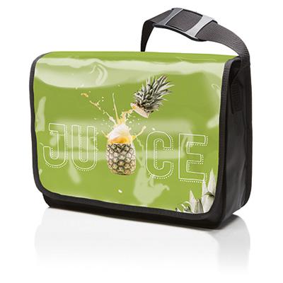 Materiał: Materiał plandekowy + folia Rozmiar: 37x29x13 cm Pakowanie: 20 szt./karton Specyfikacja: modna torba umożliwiająca prezentację Twojego, indywidualnego przekazu reklamowego; przeźroczysta klapa na zamek błyskawiczny; wewnątrz elementy organizatora; kieszeń na na tylnej części torby; regulowany pasek na ramię ramię