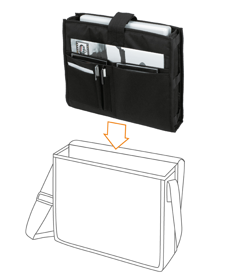 Torby na ramię stają się błyskawicznie torbami na notebooka :) Notebooki, netbooki i laptopy mają ze sobą coś wspólnego: uwielbiają być dobrze chronione. Dzięki wkładowi do torby możesz w prosty sposób wyposażyć swoją torbę na ramię w przegrodę na laptopa. Dodatkowy efekt uboczny: wkłąd nie tylko mieści notebook, netbook czy laptop ale oferuje także miejsce na inne materiały piśmienne. Wkład pasuje do toreb HALFAR® z oznaczeniem przy zdjęciu głównym