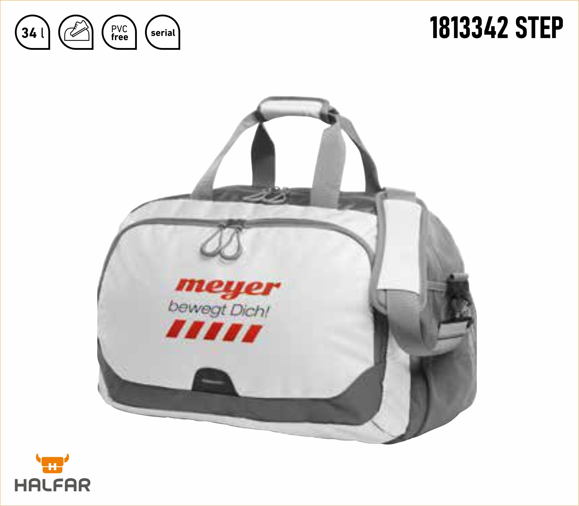 | Trener motywacji... Mały trener motywacji w postaci torby. Dzięki bardziej kompaktowym rozmiarom, modnemu stylowi, wspaniałym kolorom i sprytnym funkcjom sportowa torba podróżna STEP woła z daleka: Kocham sport! Kto mógłby się oprzeć? Spakuj więc buty sportowe do dodatkowej przegródki na buty, klucze z przodu, ubrania w dużej, głównej komorze i przerzuć wyściełany pasek przez ramię! No to idziemy! Materiał: Poliester 420D & ripstop Rozmiar: 48x33x22 cm Pojemność: 34L Pakowanie: 20 szt./karton Specyfikacja: przestronna komora główna zapinana na zamek z funkcjami organizera i solidną podstawą; przednia kieszeń na zamek błyskawiczny z elementem odblaskowym; boczne kieszonki z siatki; boczny przedział na buty; uchwyty z wyściełanym naramiennikiem; odpinany, regulowany pasek na ramię o długości |